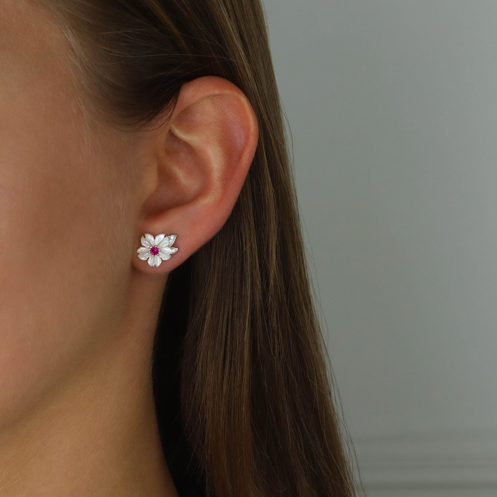 Kolczyki srebrne z cyrkoniami, kwiaty - TANNE Ag 925, 1.6 g