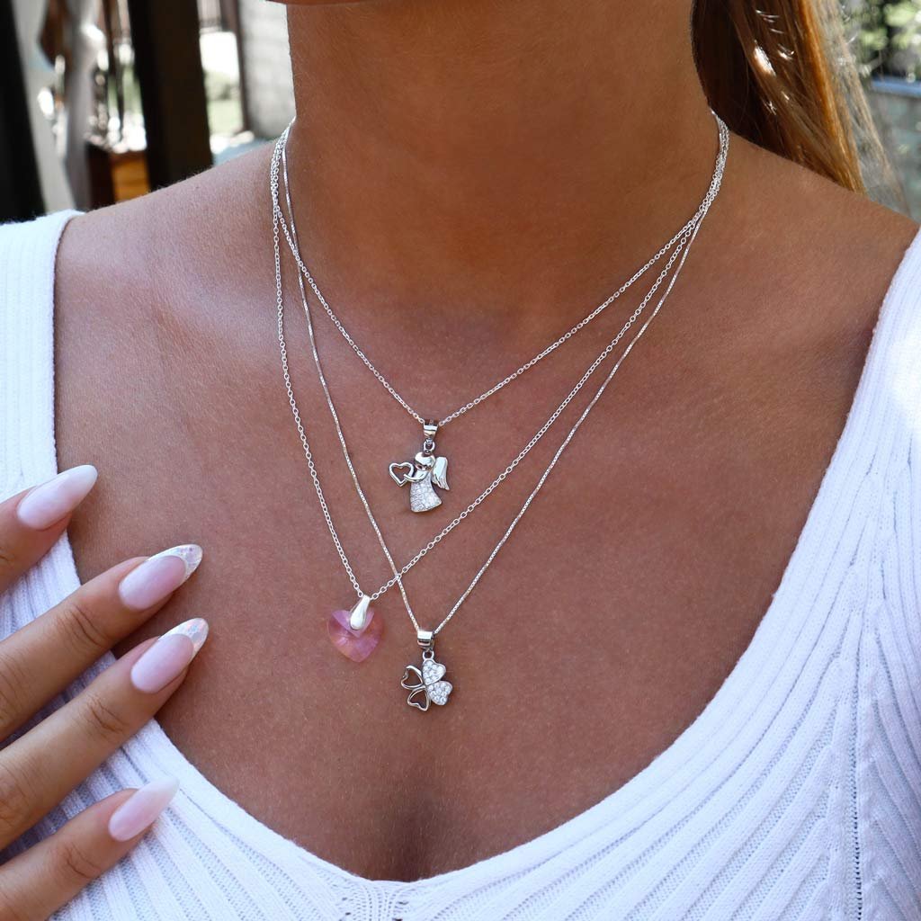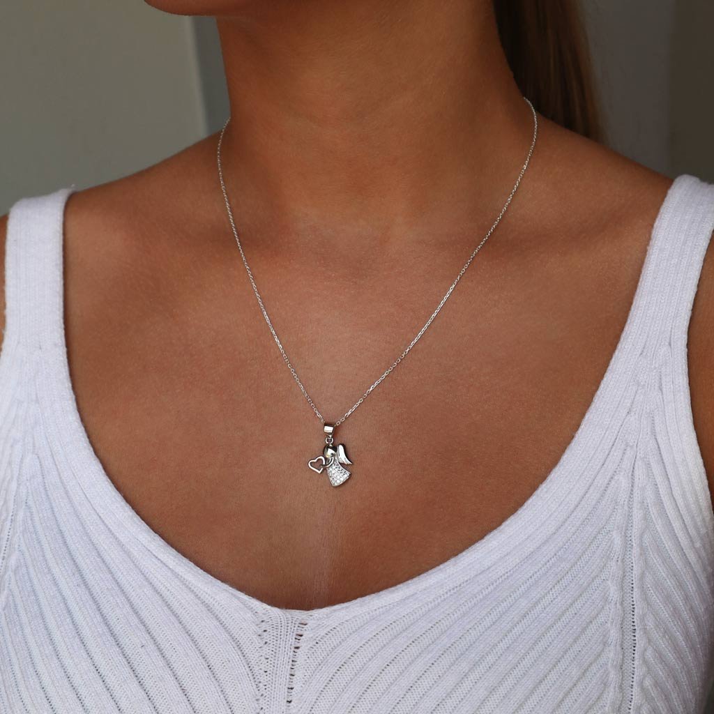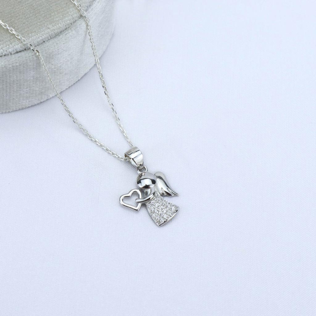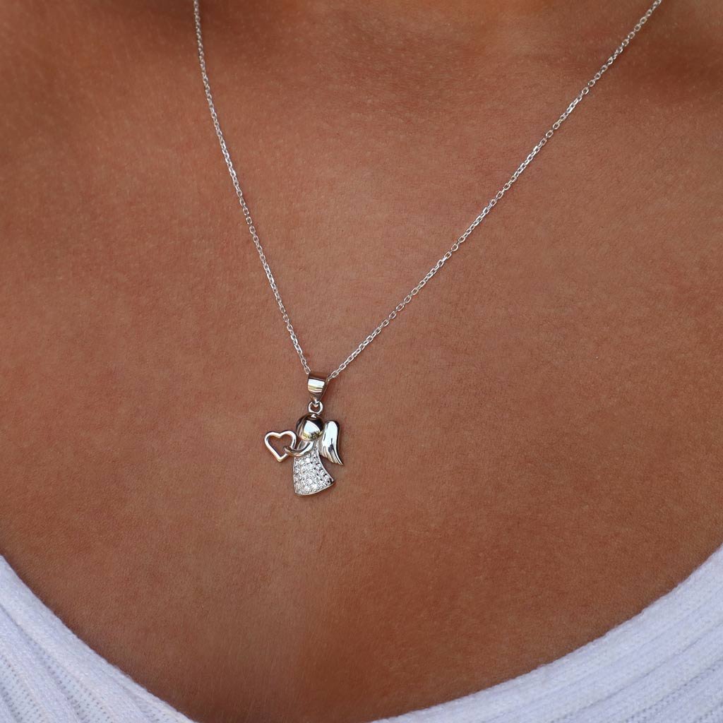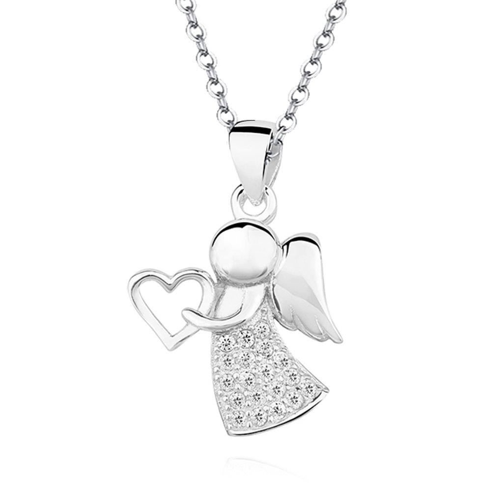 Naszyjnik srebrny z cyrkoniami, anioł - GAIA