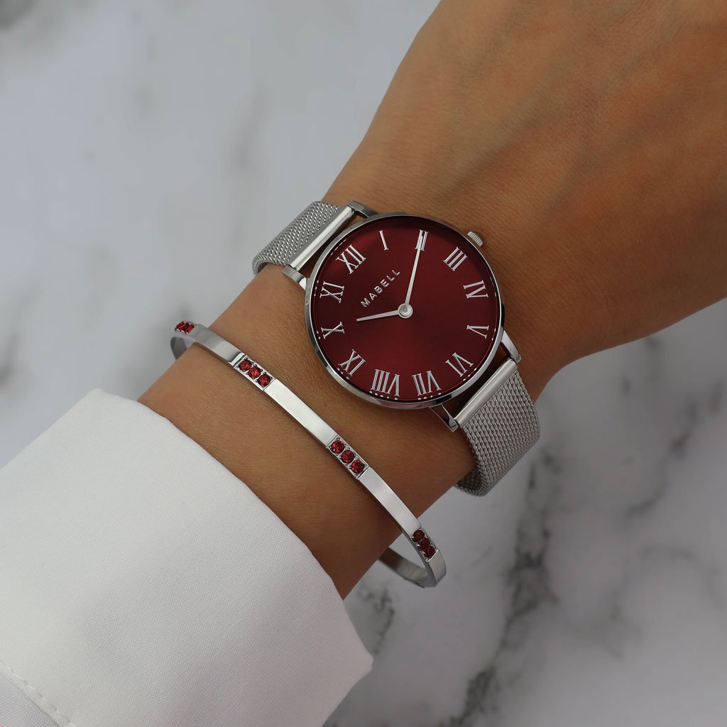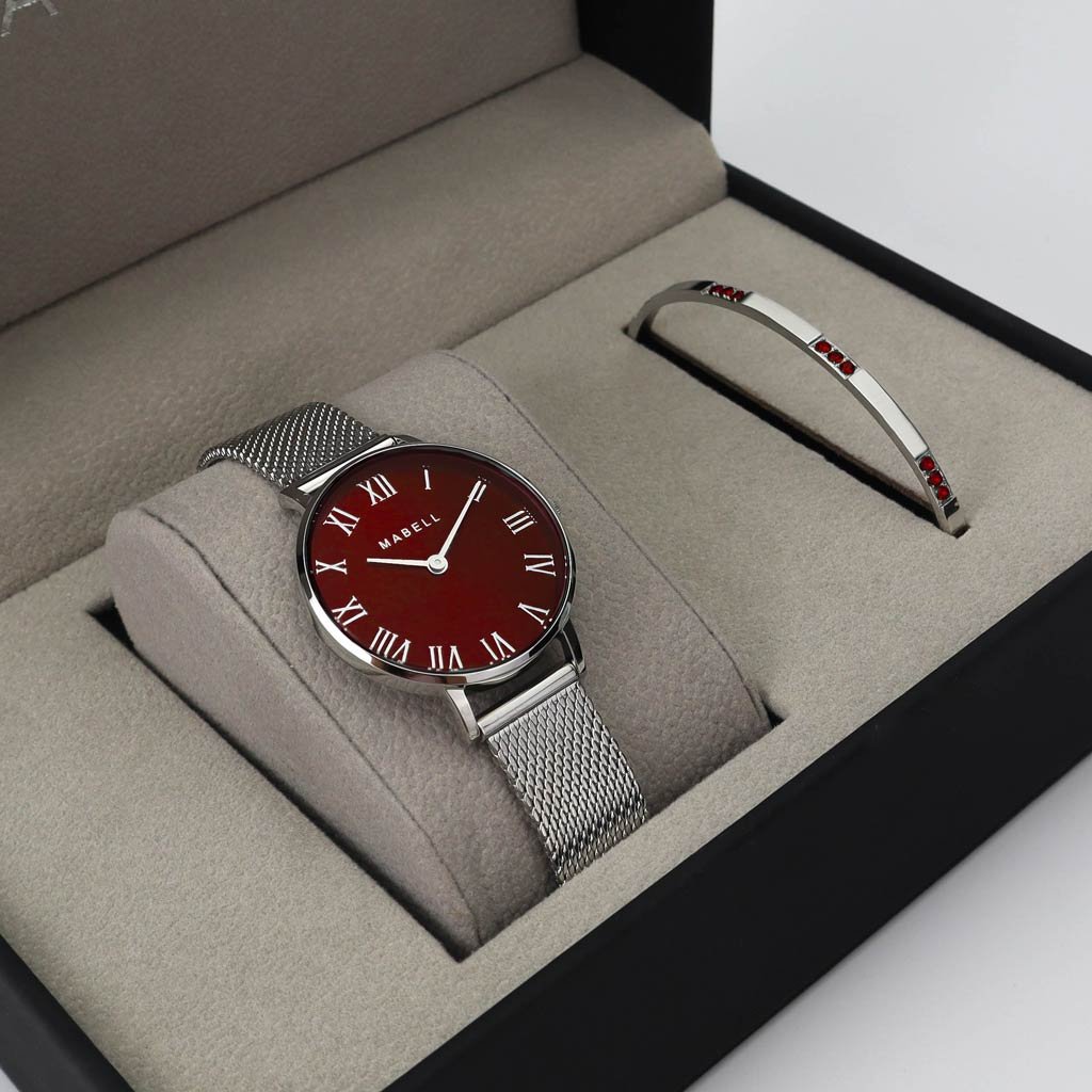Zestaw zegarka i bransoletki ze stali chirurgicznej Royal - Silver/Burgundy